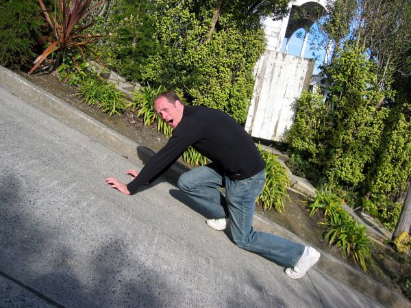 Na Baldwin Street, a inclinação no trecho “mais difícil” chega a ser de 35%. A rua tem quase 350 metros de comprimento, e a cada três metros de caminhada, o pedestre sobe quase um metro de altura. Um policial comunitário chamado Brendan Thomson chama a atenção para os perigos da rua, pois uma pessoa já morreu ao rolar rua abaixo dentro de um latão de lixo, que acabou batendo contra um trailer.