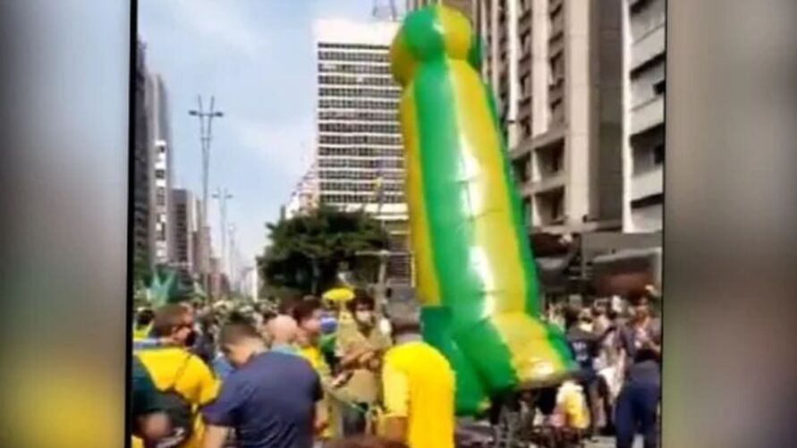 Objeto fálico foi visto na manifestação a favor de Bolsonaro | Reprodução.
